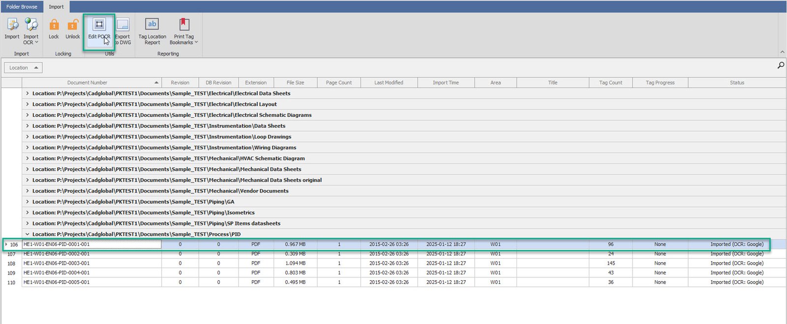 The PDF Scans however are getting imporved but still they are not 100% accurate. To imporve the accuracy of the scan, some of the OCR text can be fixed using Edit POCR option in X4D Data Import. The updated POCR files are saved within X4D for tag or tag attributes processing. Unless the document is forcefully scanned again (SHIFT + IMPORT) the scans are always reused. This is done to save cost in cloud scanning.