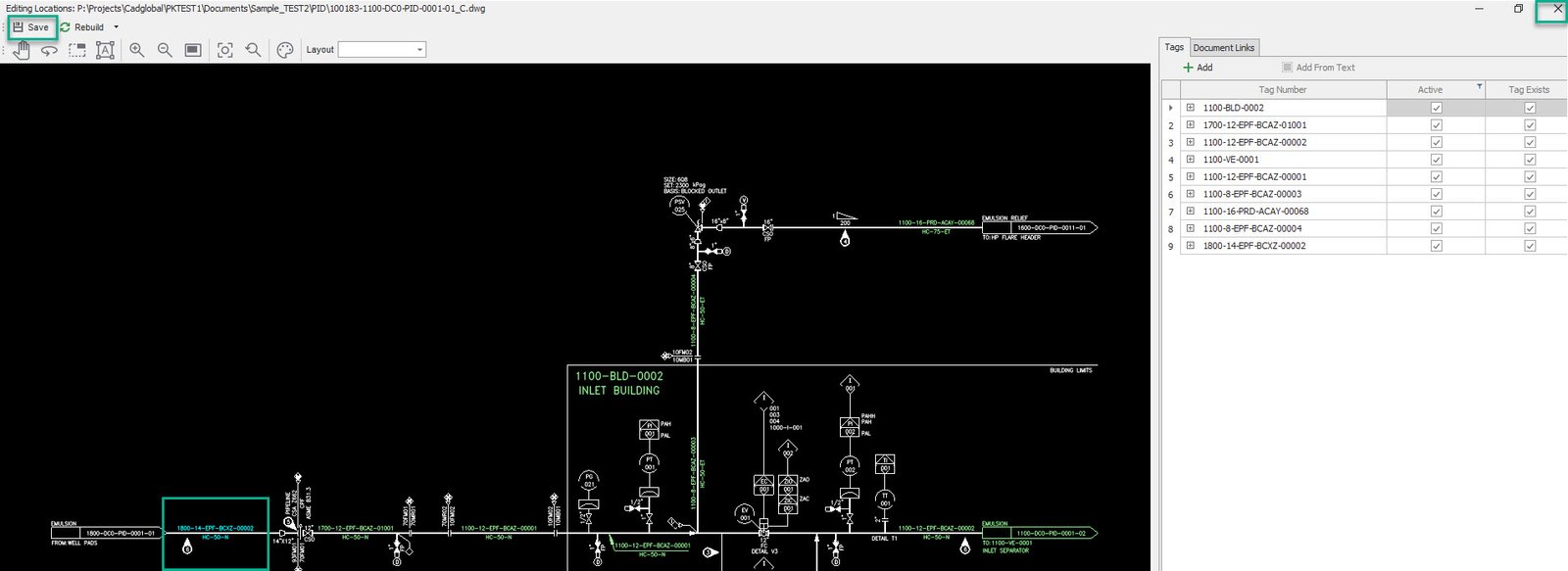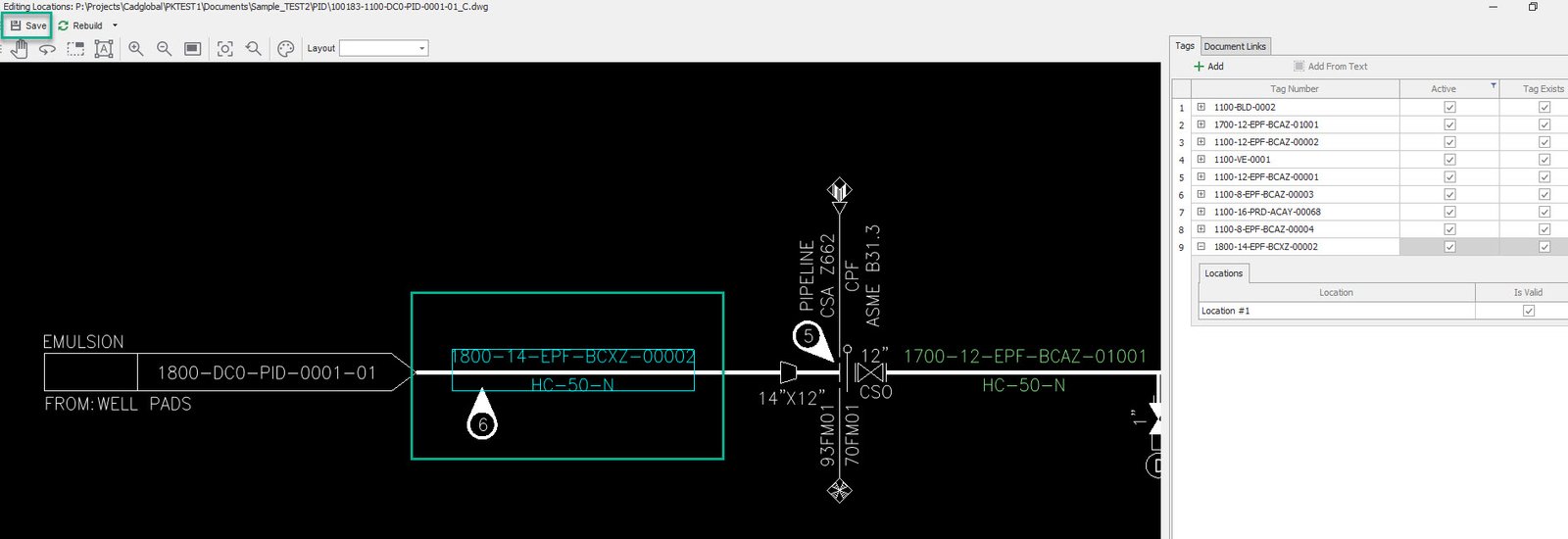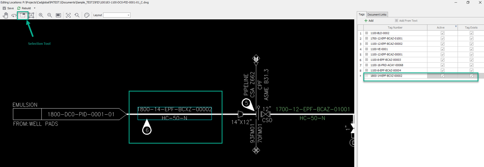 •The missing tag should now be picked in the drawing.