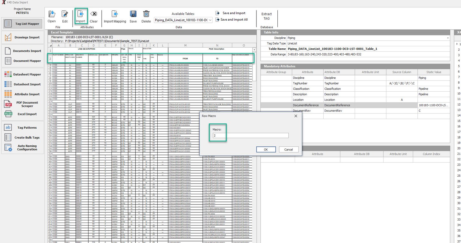•Once done, Click "Import" and enter the Macro value in the pop up. If more than one value is to be entered, seperate it with a " ; ".