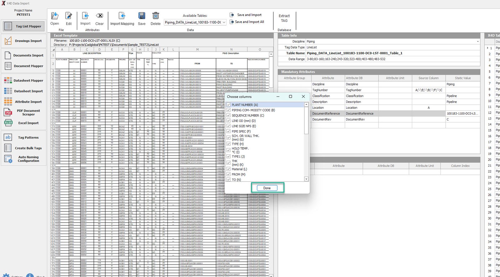 •Review the imported Columns and Click "Done".