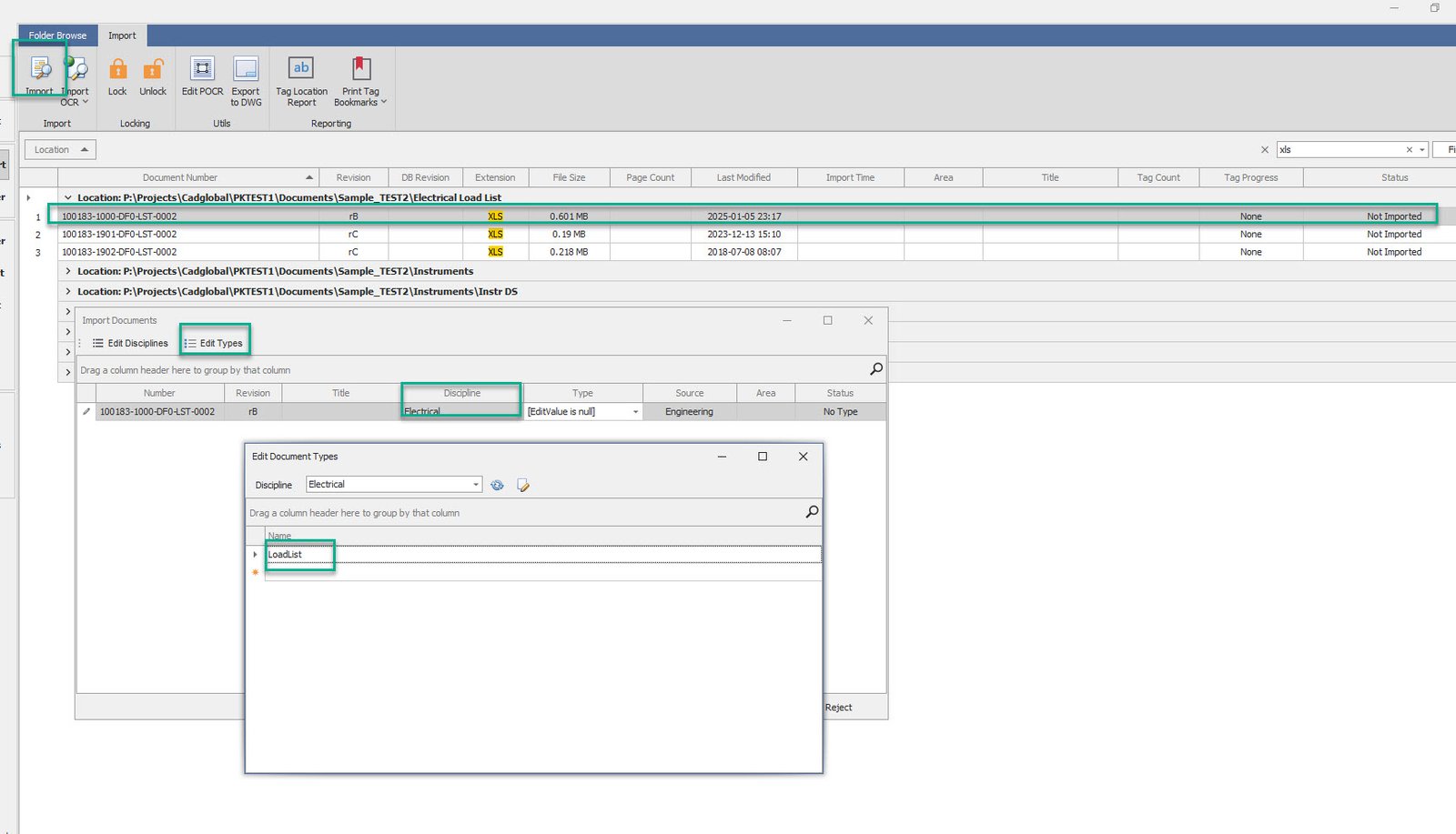 •Select the Discipline and define the type in the Import Documents Pop up window
