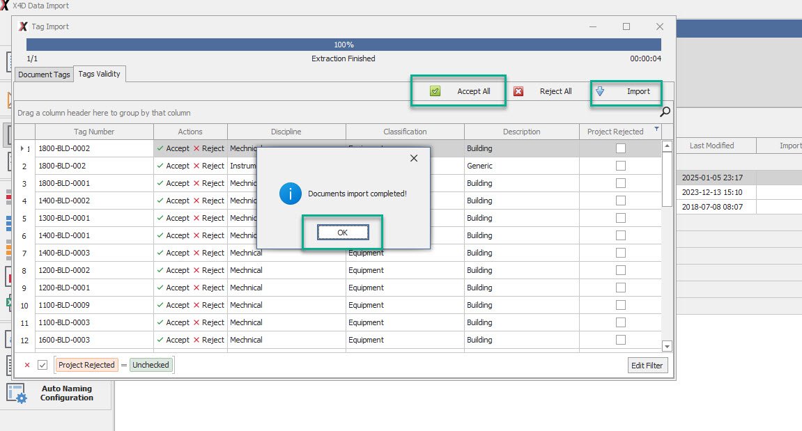 •Review the Imported tags and Click Accept All and then Import