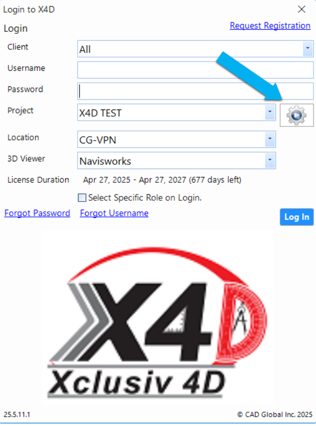 1. Open X4D and Enter Project Settings in X4D Login Screen