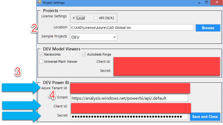 3. Add Azure Tenant Id, Client Id and Secret to Project Settings
