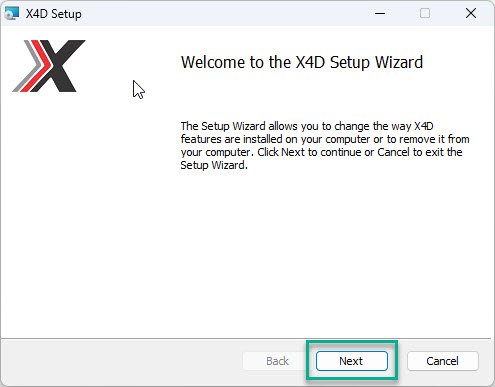 •Continue by clicking Next if the latest version of X4D is not already installed.
