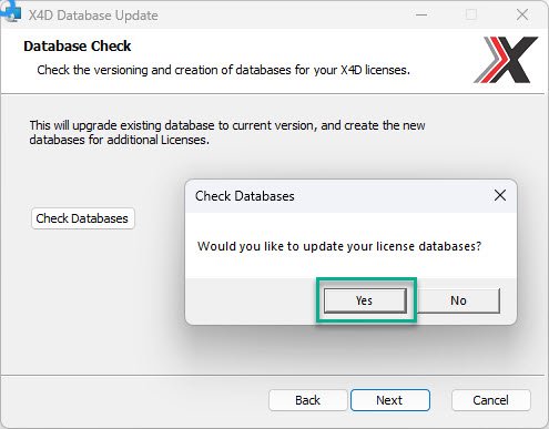 •This would pop up a window to confirm the action to update license databases. Click Yes.