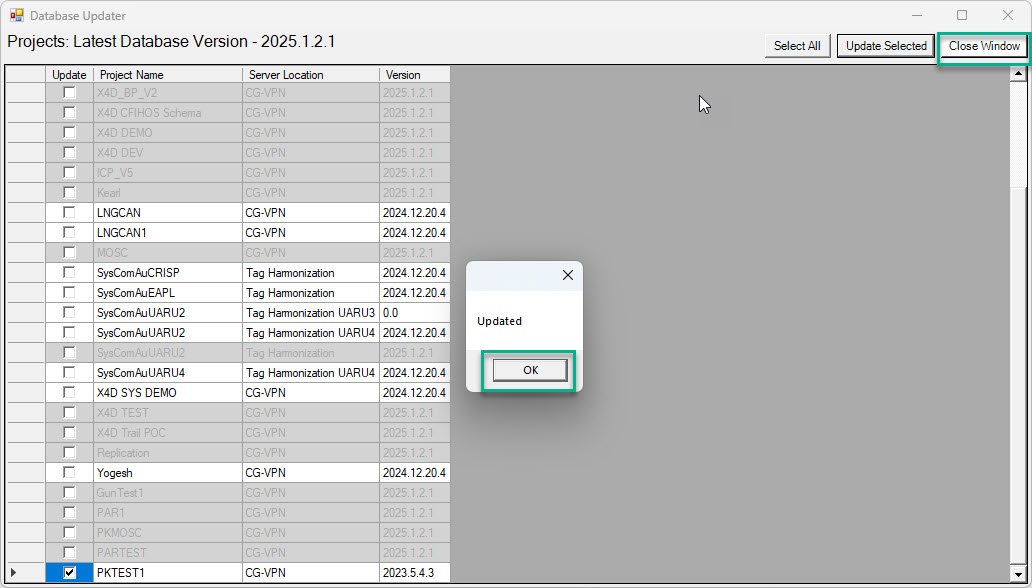 •Select your Project and Click Update Selected