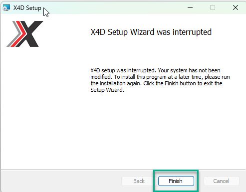 Get the current version Installer for the Latest version of X4D from the following location P:\Apps or from https://www.x4dglobal.com/support