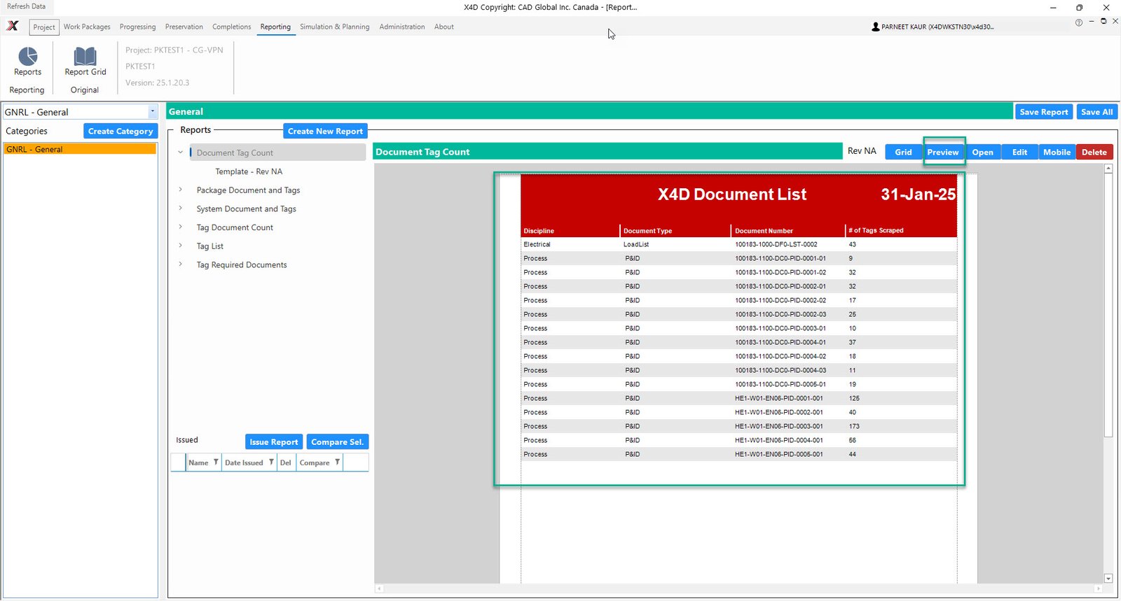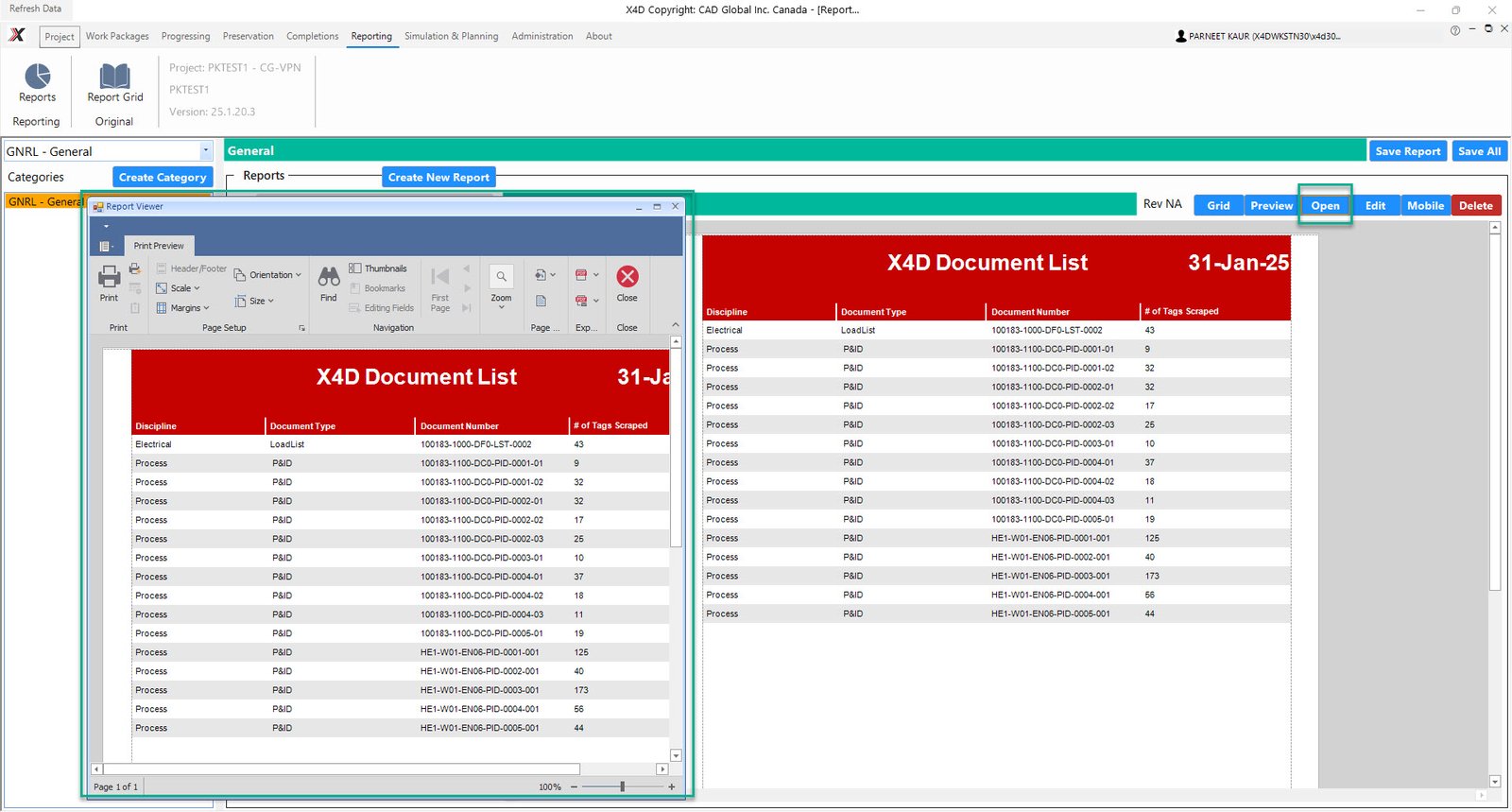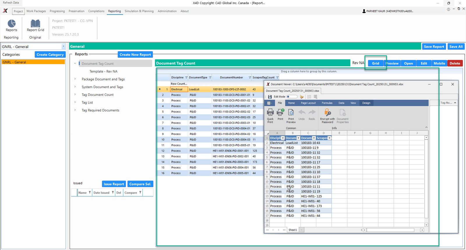 •Once the report is selected, click on the Grid button marked in the below image to launch the report in a Excel Grid format.