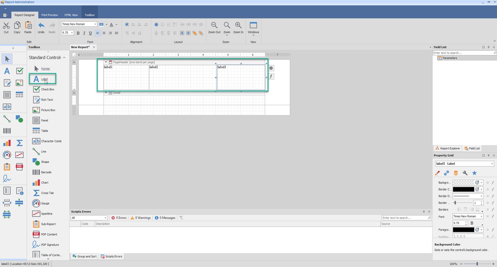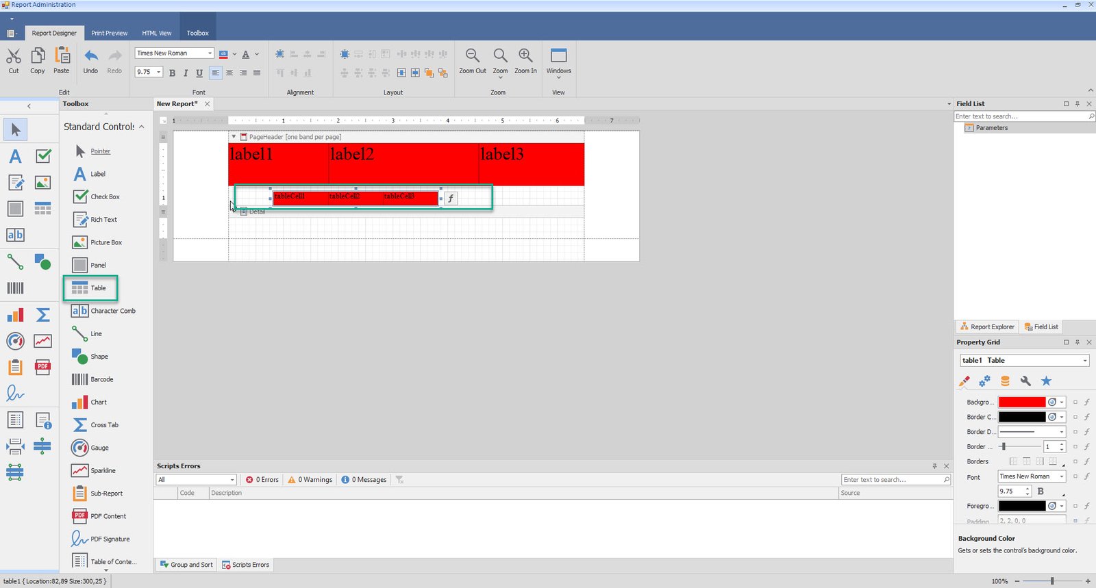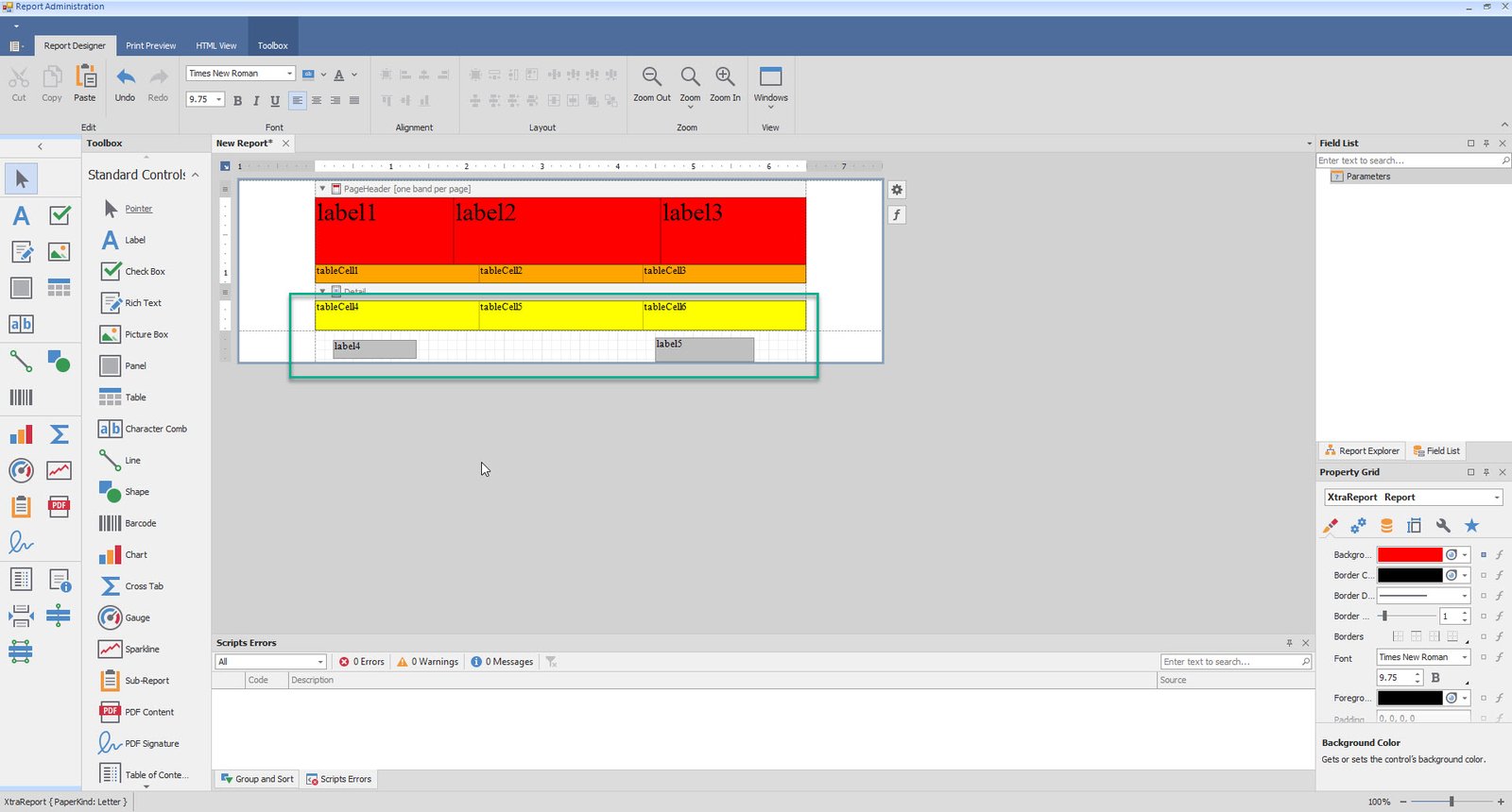 •Add table and Labels to Detail and Footer as well
