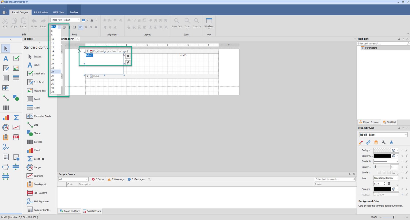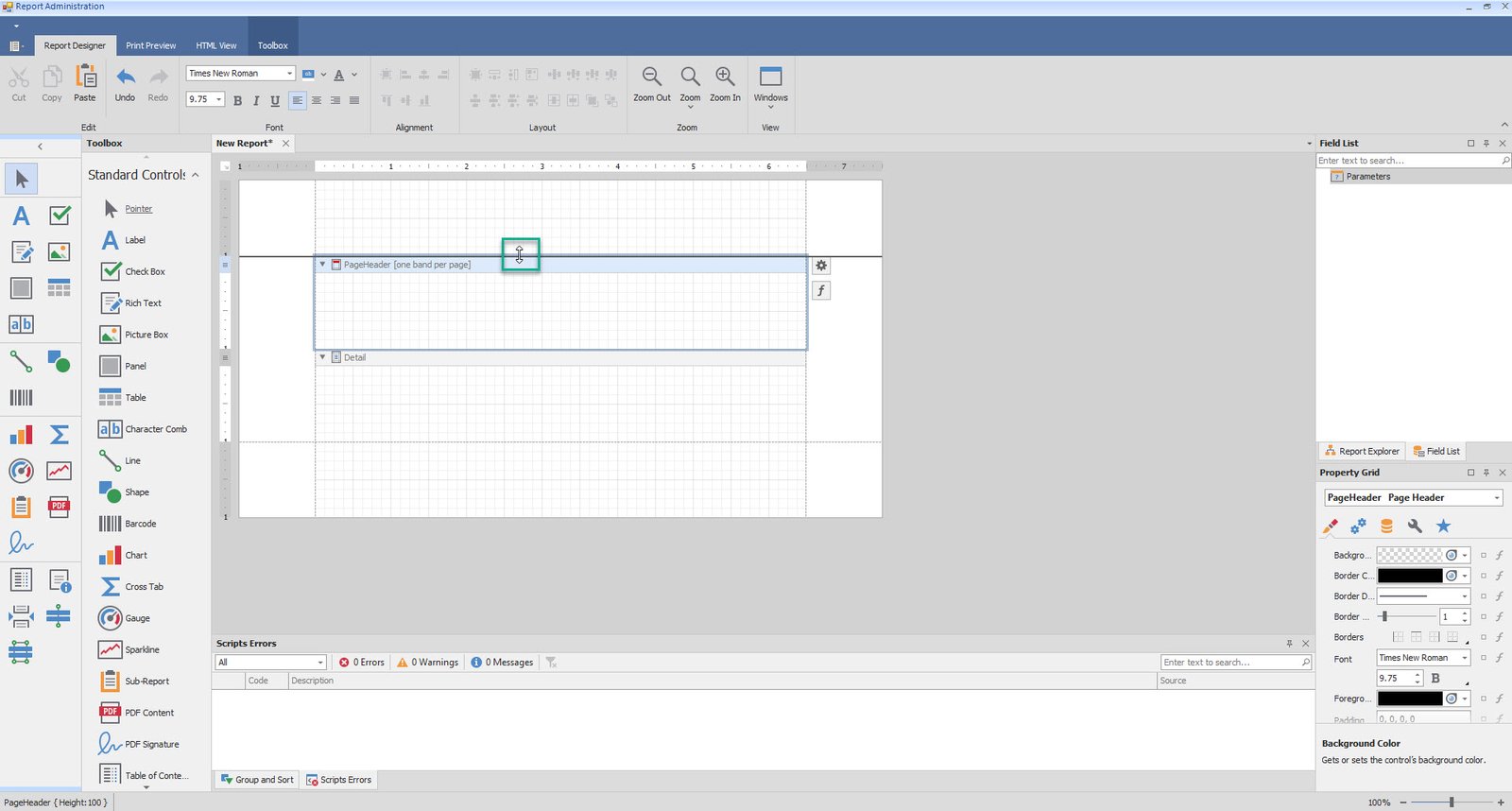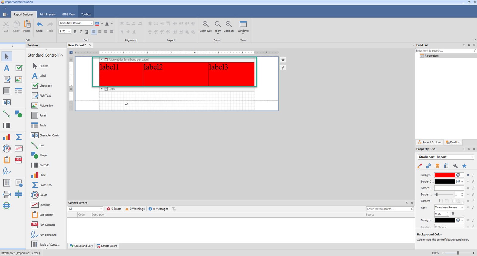 •Add table and Labels to Detail and Footer as well