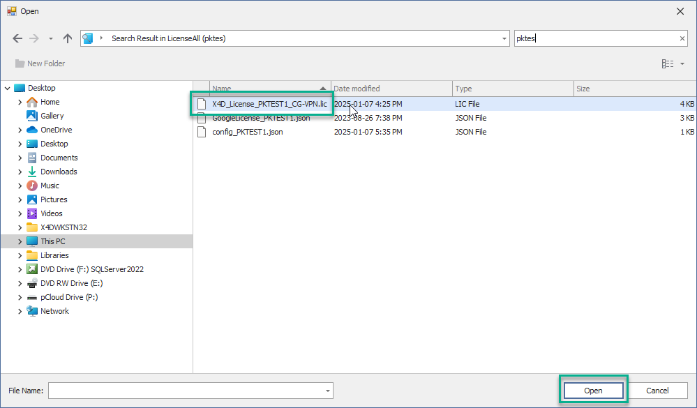 •Click on add projects and navigate to the path containing the X4D license for the project and select the required license.