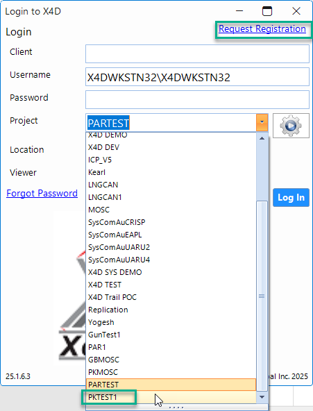 •Click on the Request Registration button on the top of the X4D loggin screen.