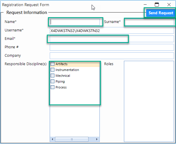 •Once all the details are filled and the requested Disciplines are selected, click send request.